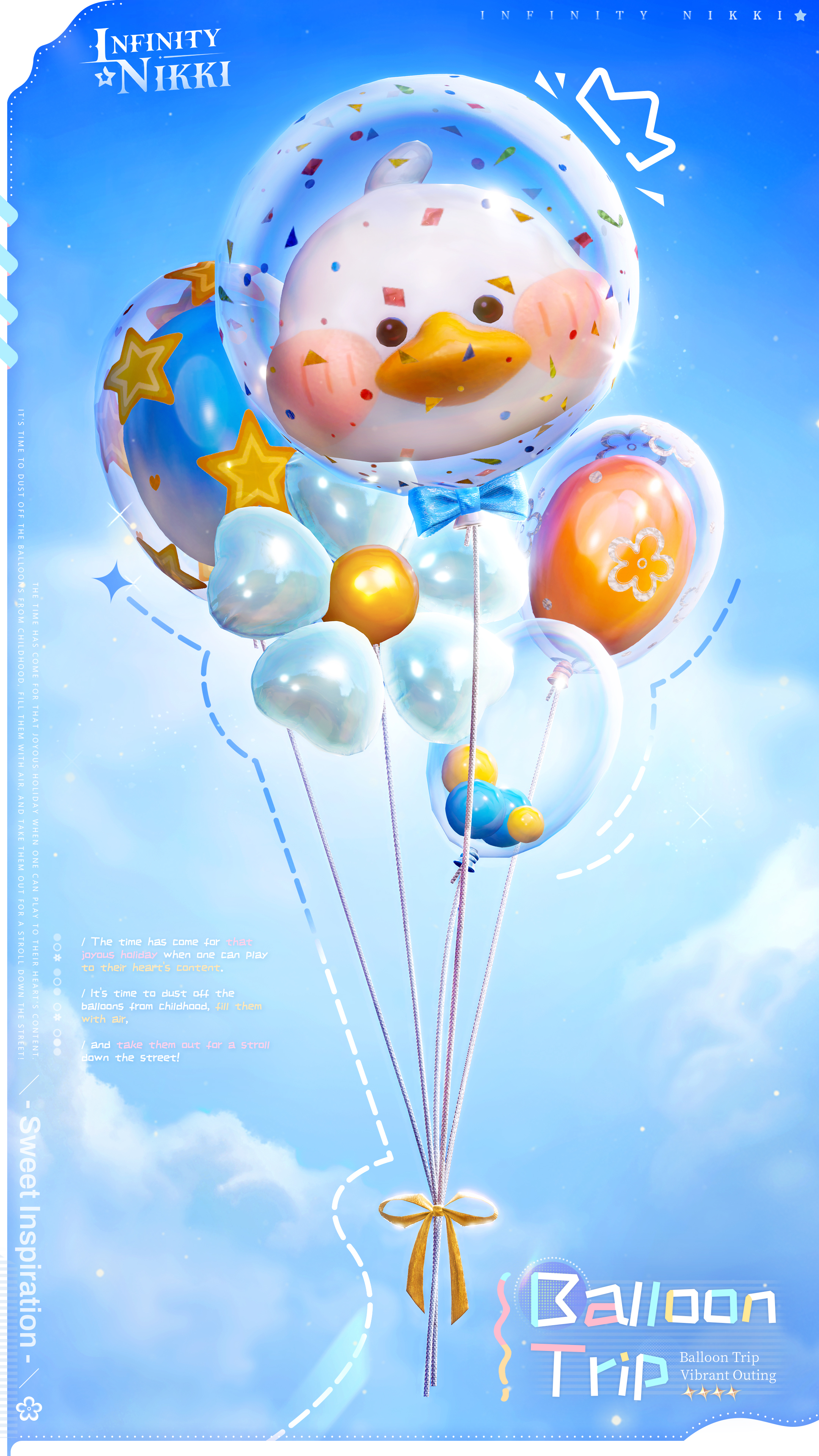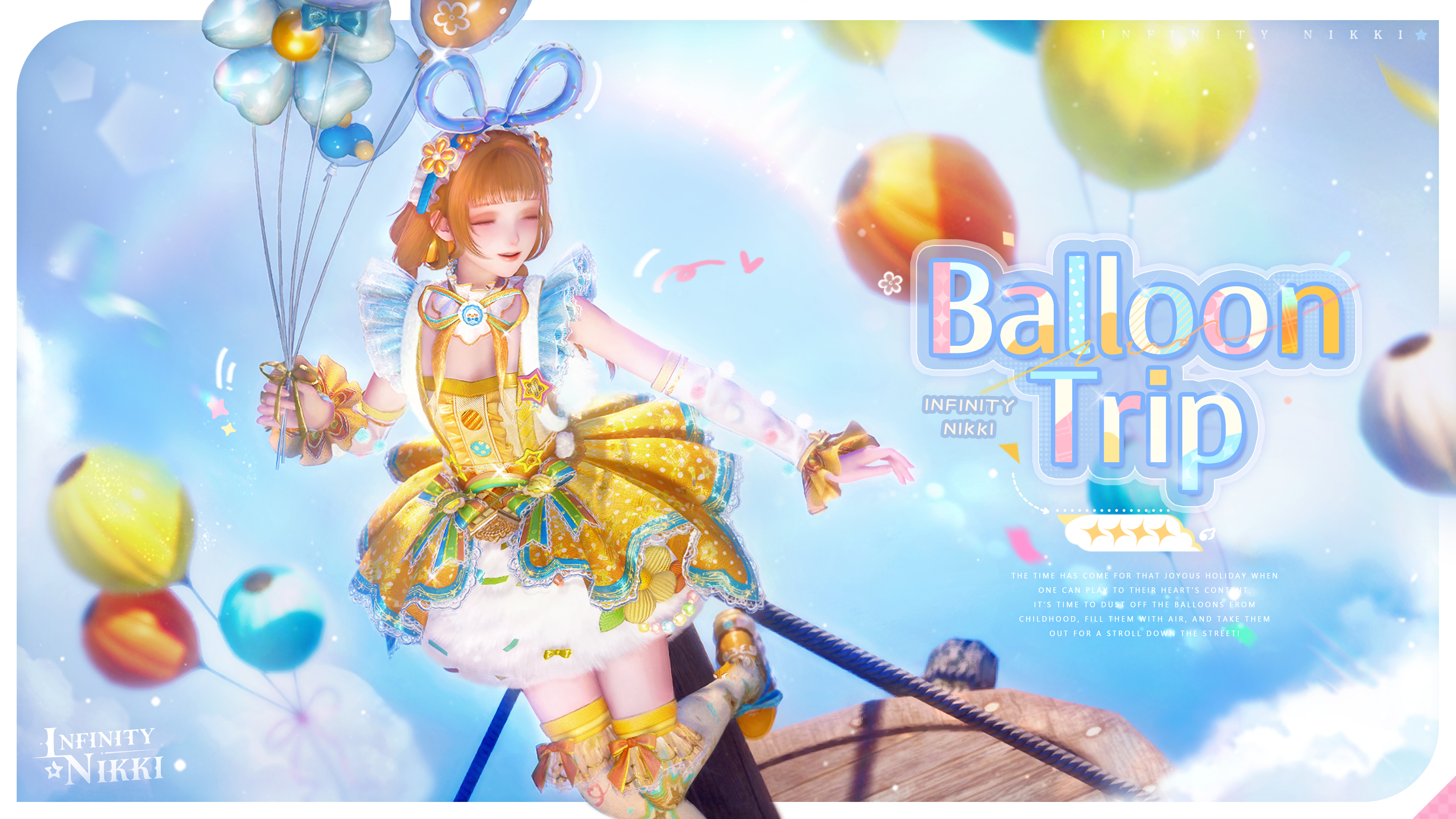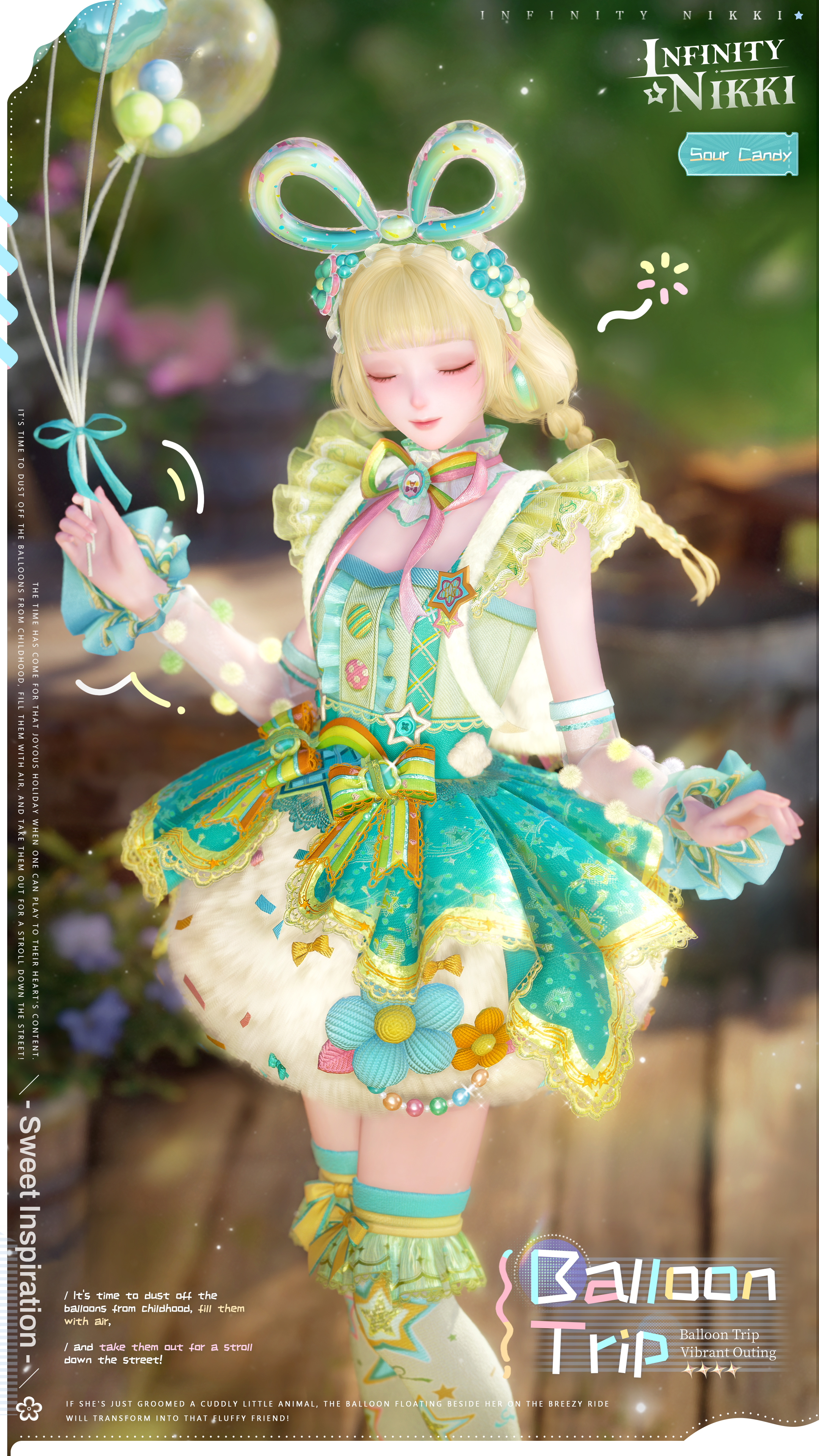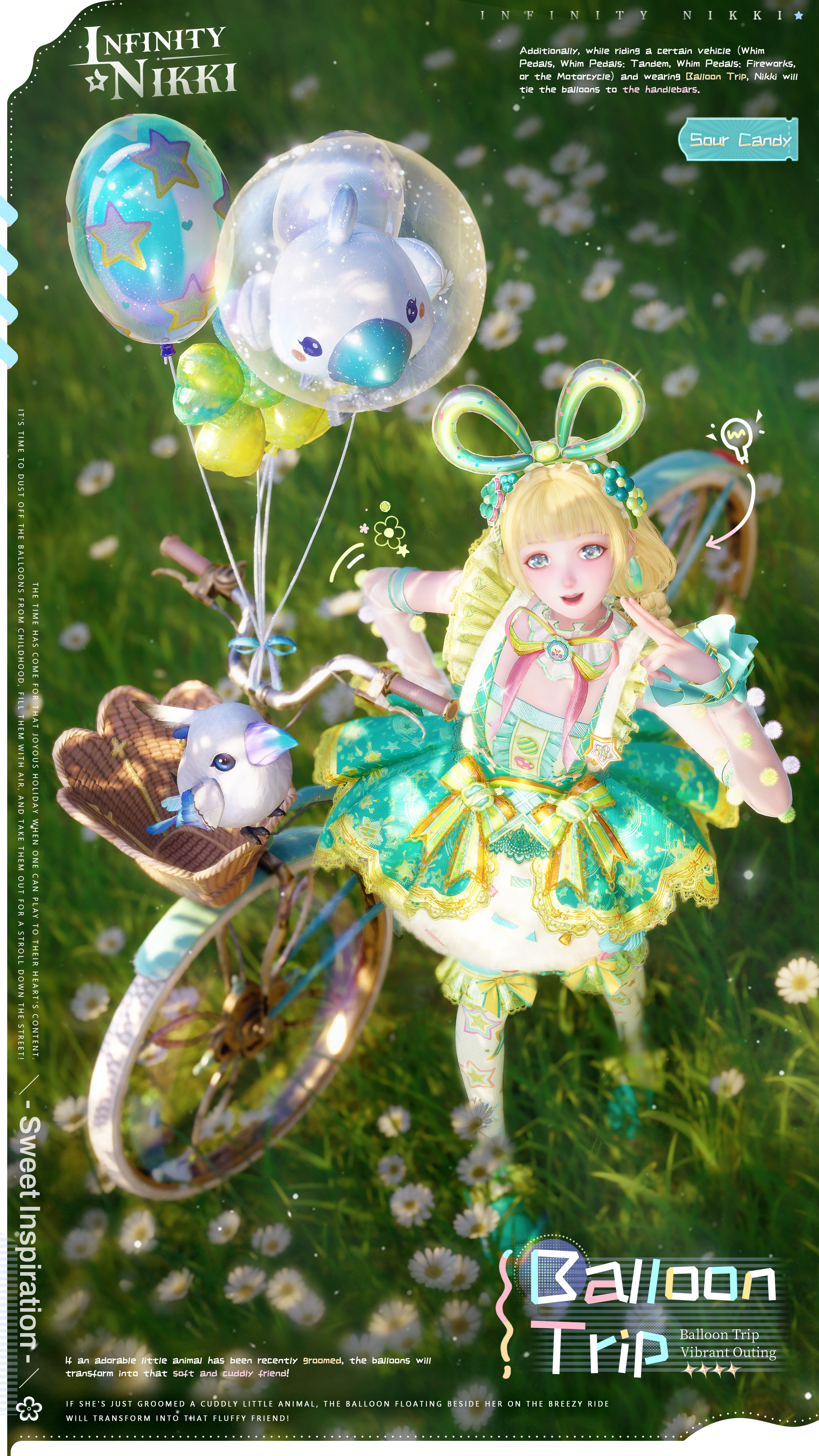 "Balloon Trip" can be evolved into the "Balloon Trip: Donut" outfit. Fully glow it up to obtain the "Balloon Trip: Sour Candy" outfit.
