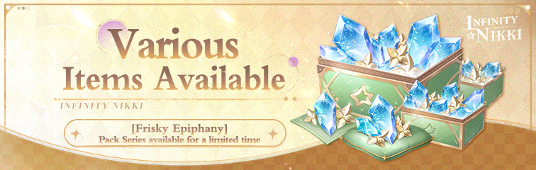 1) During the event, go to "Store: Featured" to purchase the "Frisky Epiphany Pack Series," featuring [Epiphany Crystals] and [Blings].