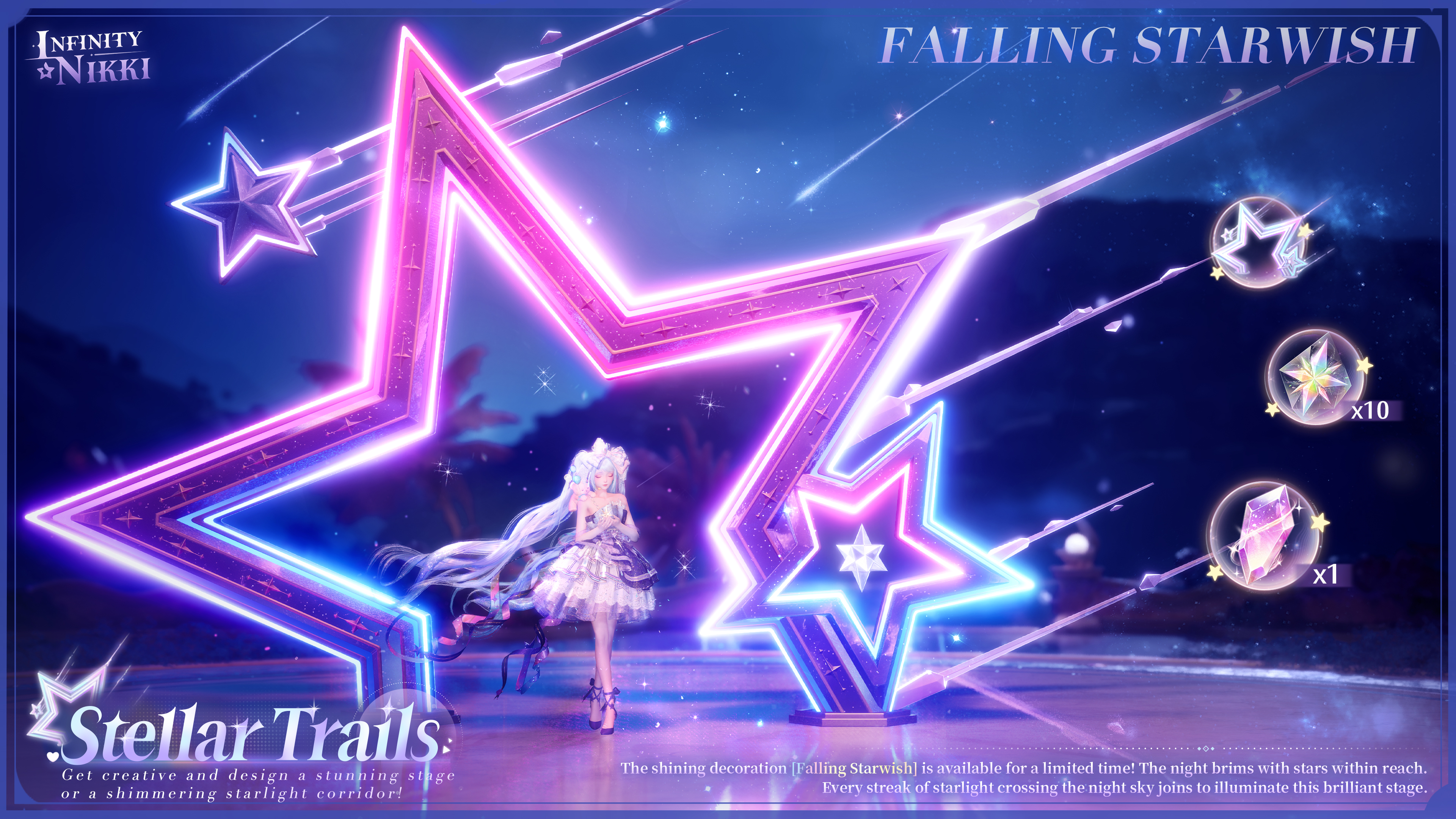 The rewards include the decoration [Falling Starwish], [Revelation Crystal ×1], [Radiant Prism ×10], and more.