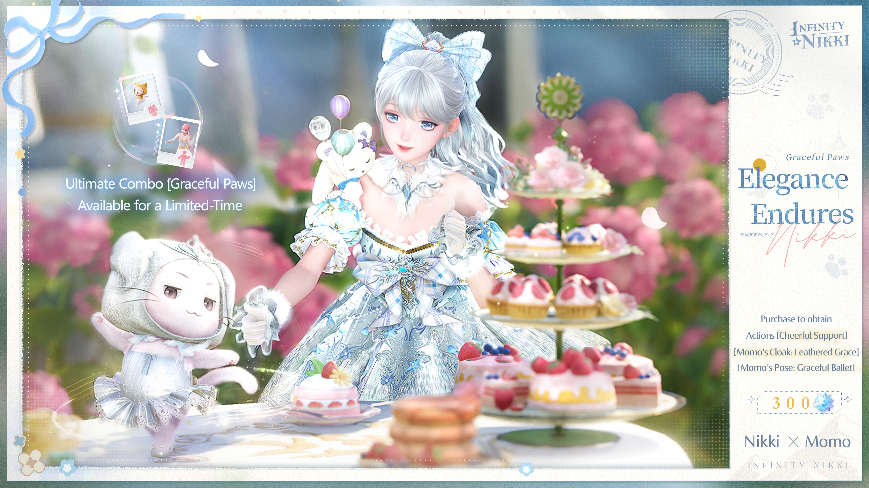 Spend 300 Stellarites to obtain actions [Cheerful Support], [Momo's Cloak: Feathered Grace], and [Momo's Pose: Graceful Ballet]!