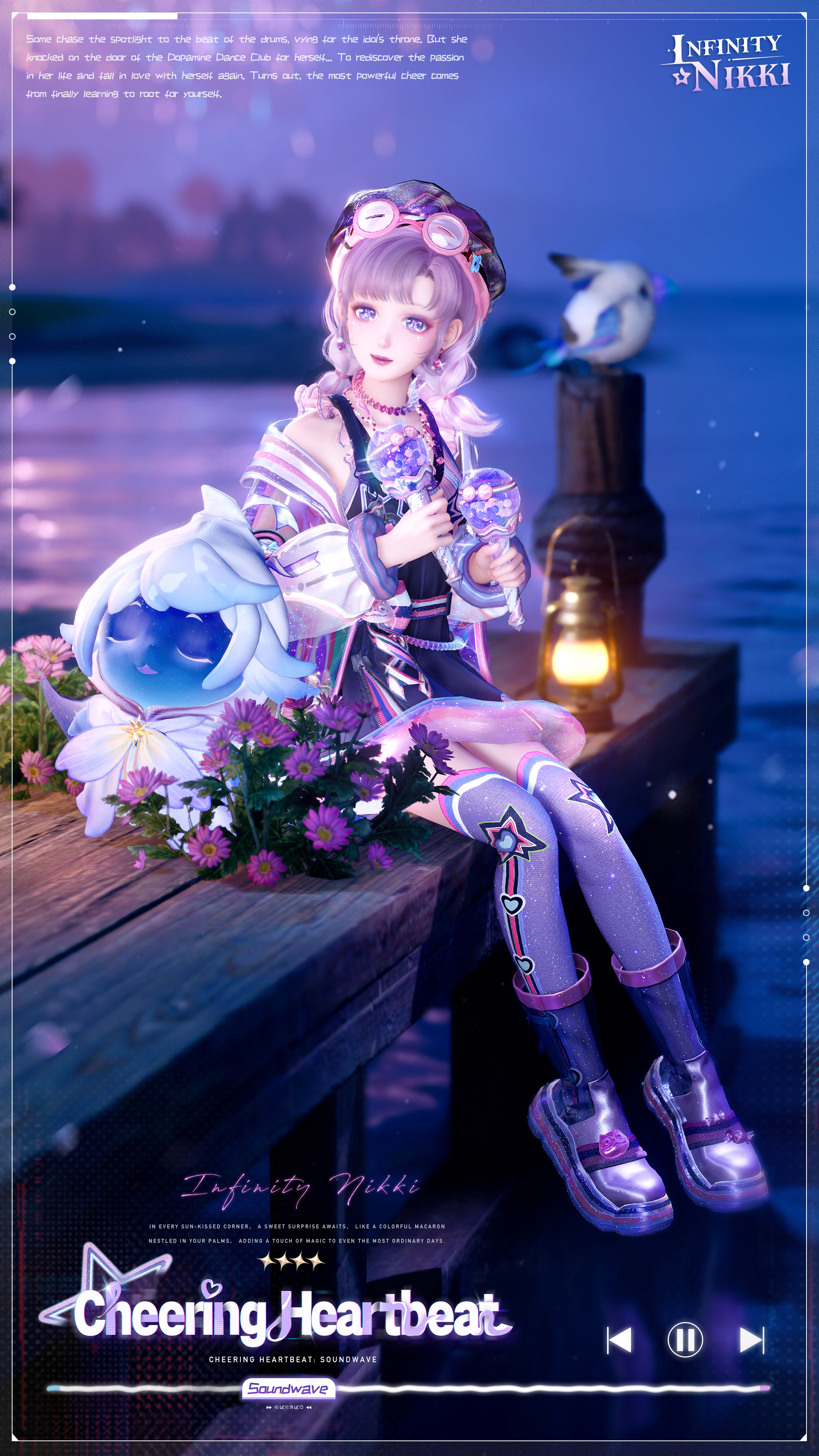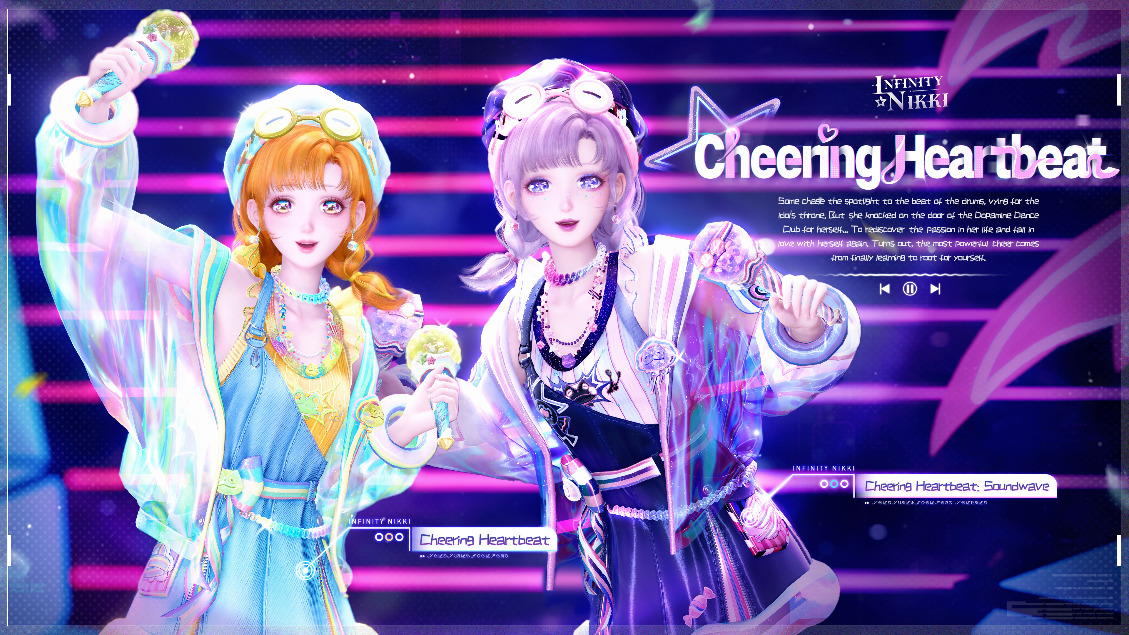 Spend 680 Stellarites to obtain: outfits [Cheering Heartbeat] and [Cheering Heartbeat: Soundwave], and the action [Peppy Jump].