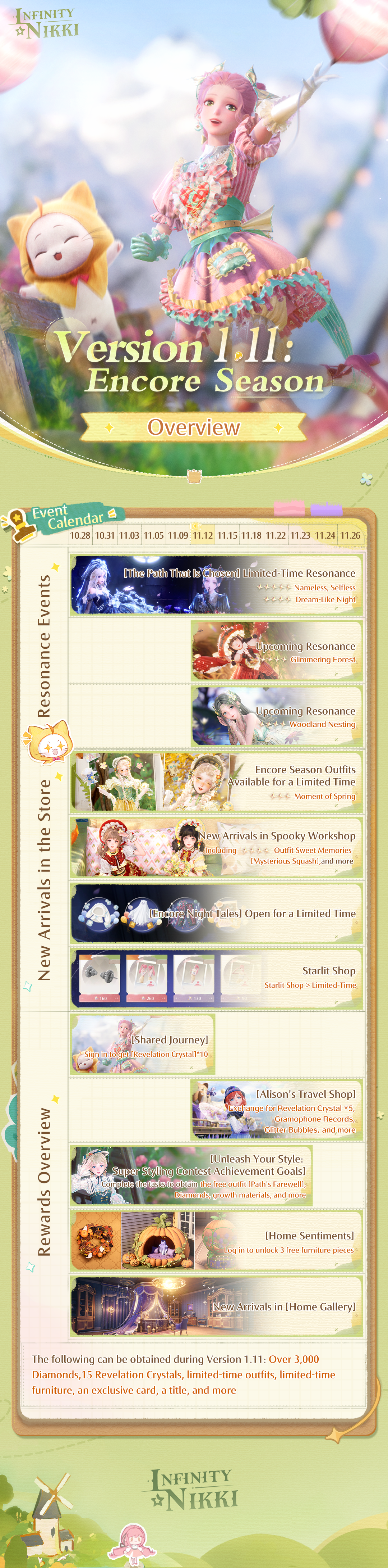 Infinity Nikki Version 1.11 "Encore Season" will launch globally on October 27 (UTC-7)!