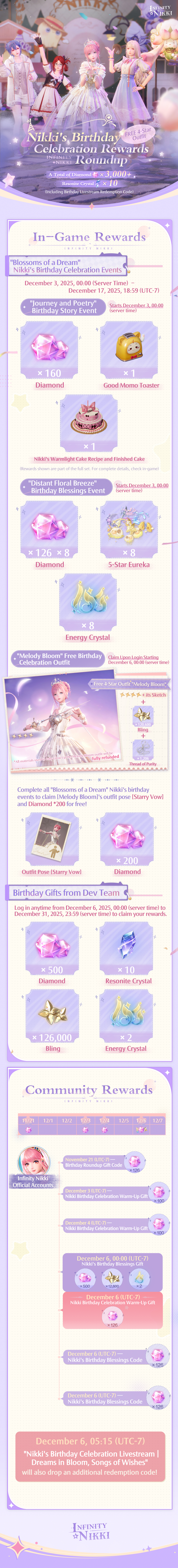 Plus, don't miss out on a surprise Redeem Code during "Nikki's Birthday Celebration Livestream: Dreams in Bloom, Songs of Wishes" (☆▽☆).