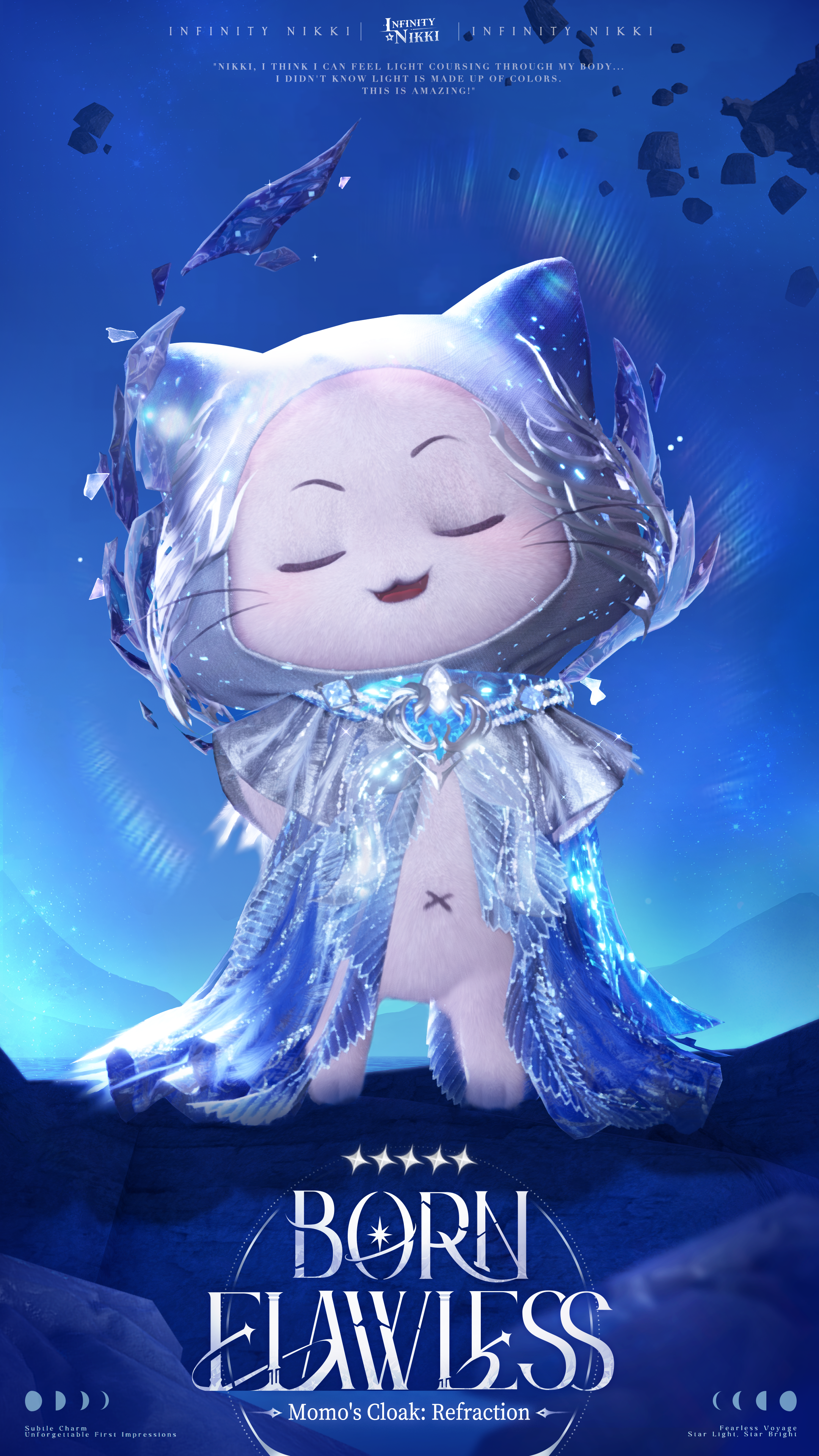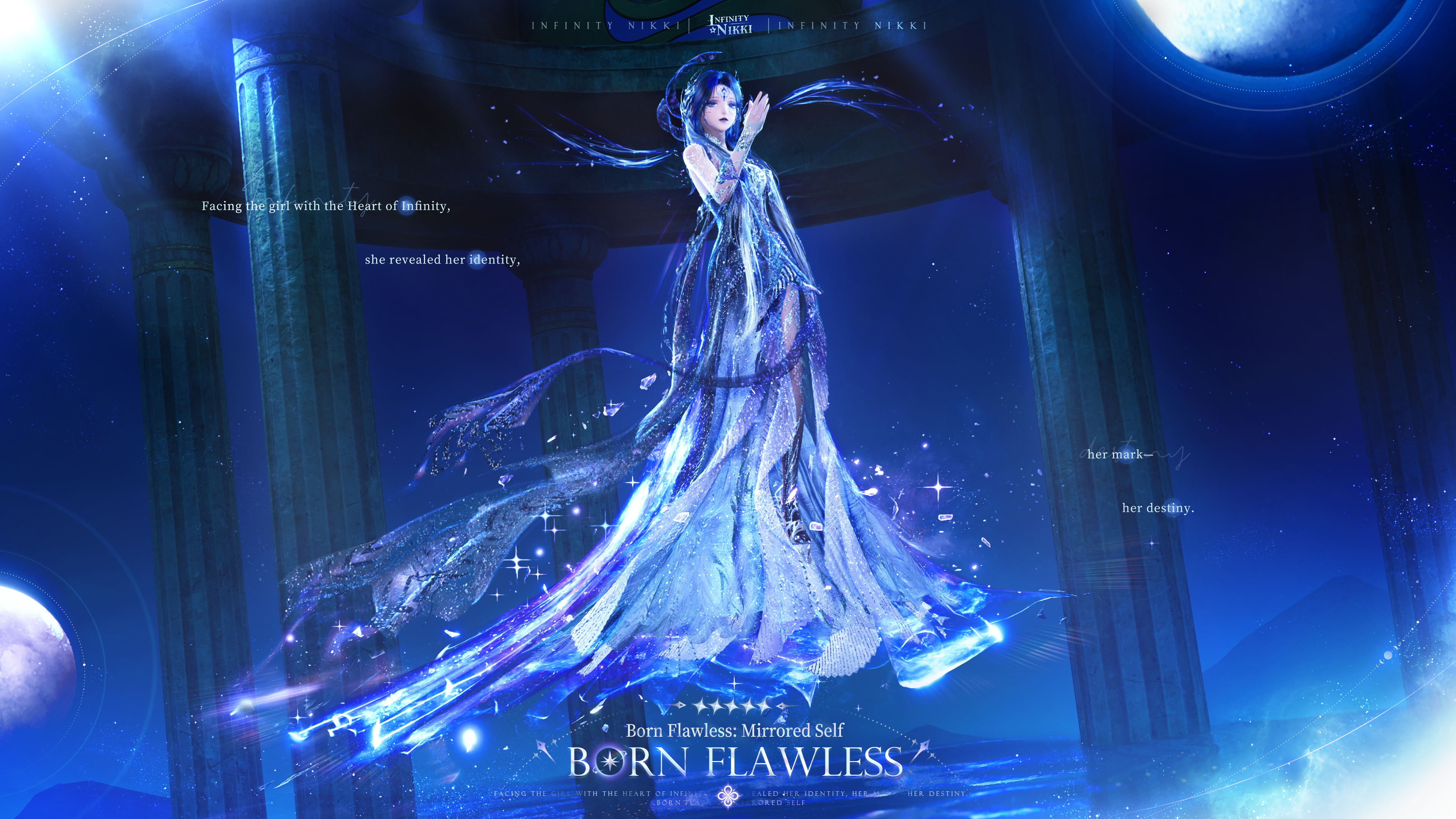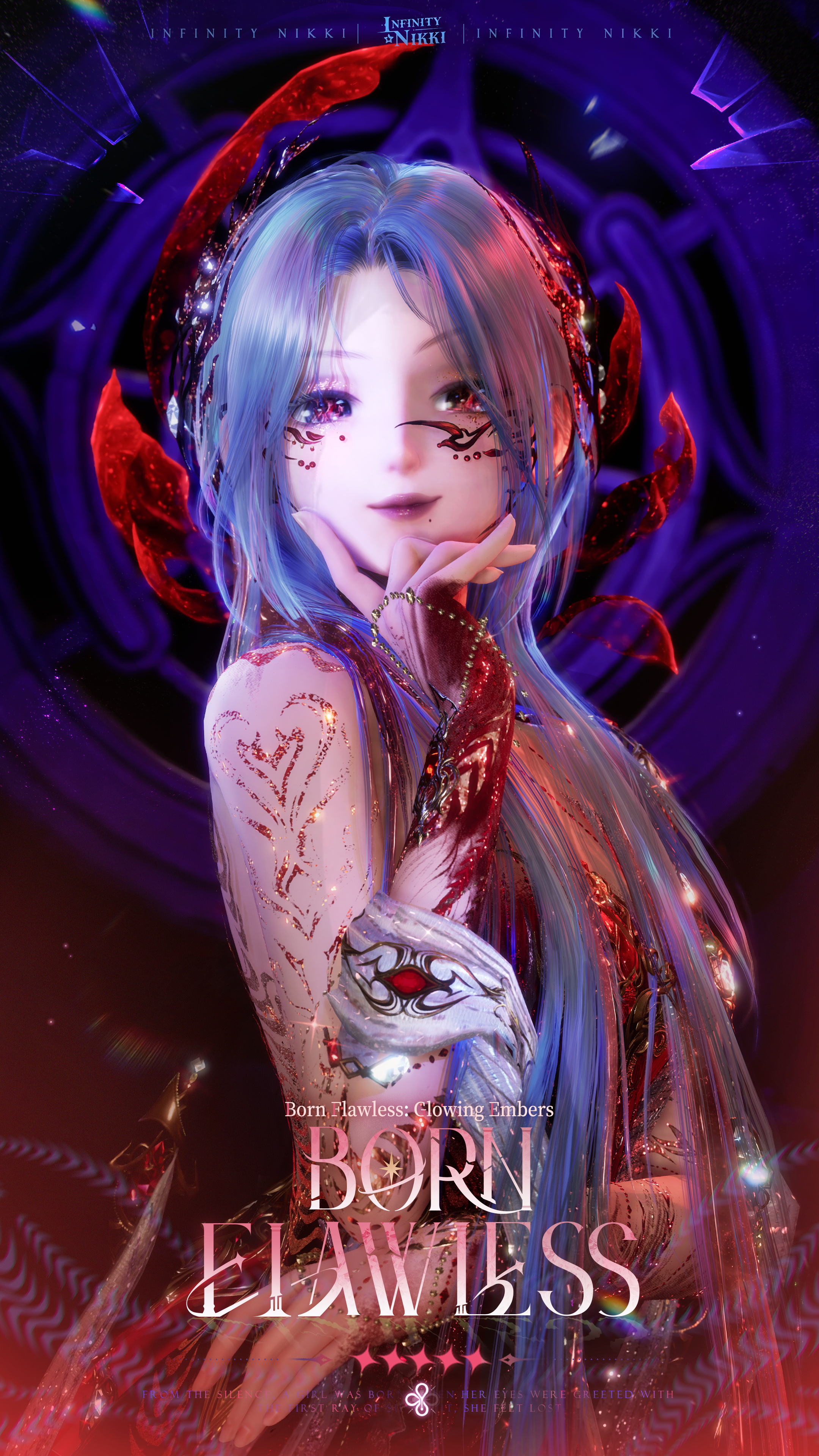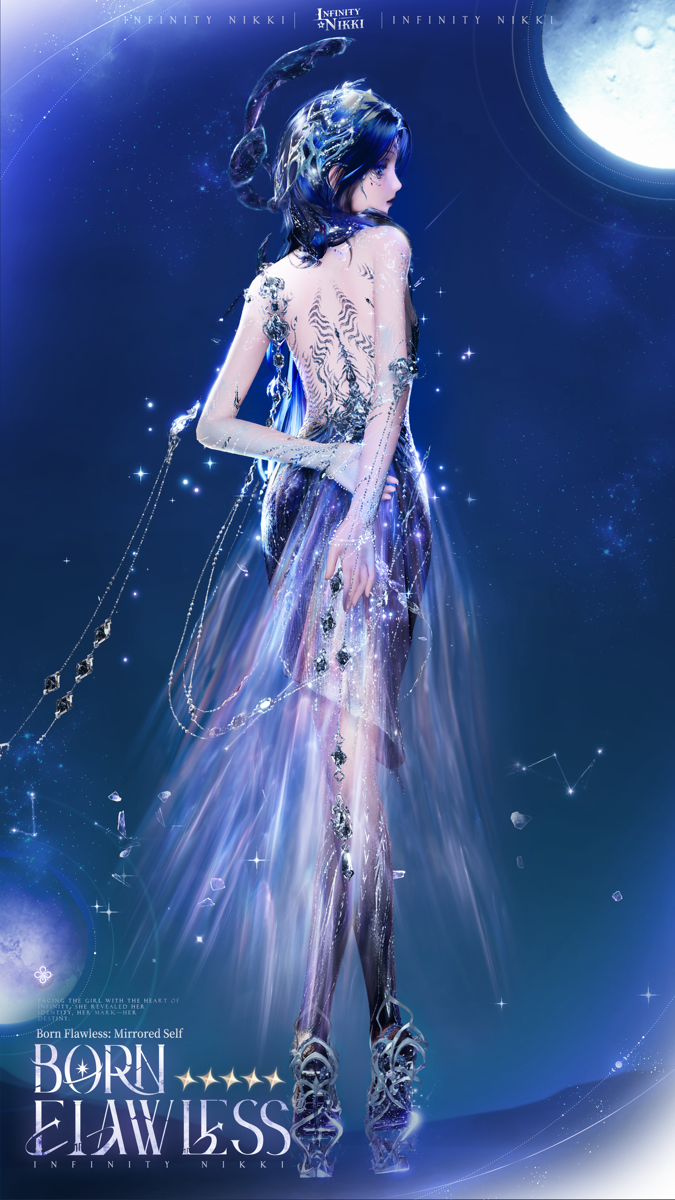 >>Evolve the 5-star outfit [Born Flawless] to Stage 3 to unlock [Born Anew: Makeup], enhanced special effects, a new idle animation, and alternate detail options for certain pieces.