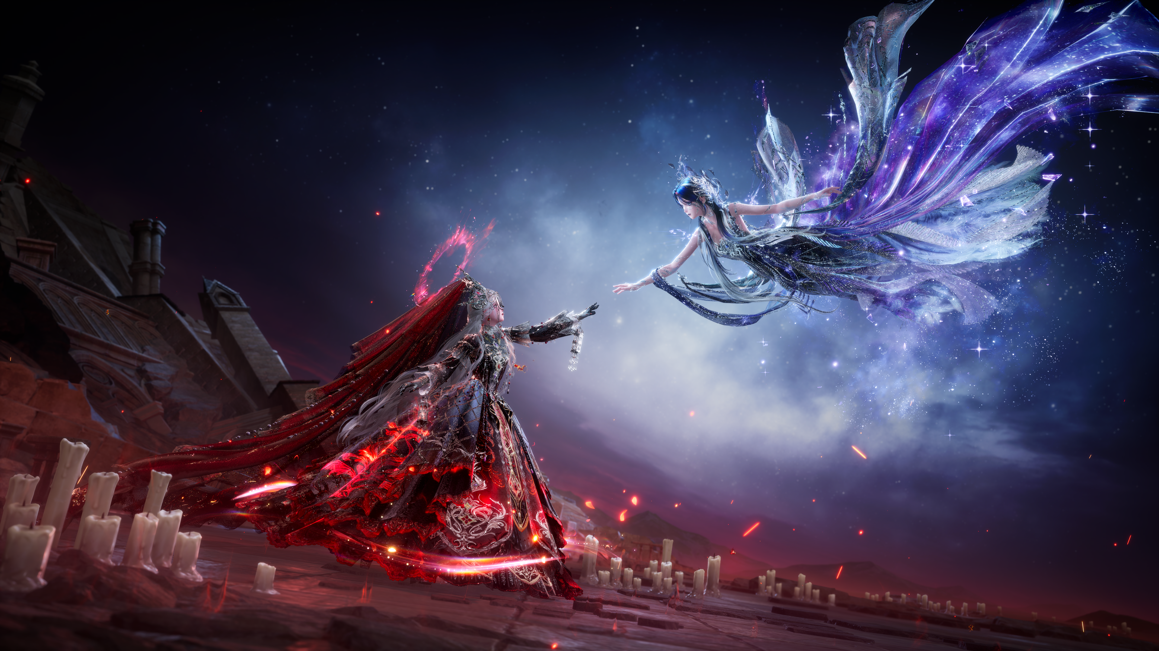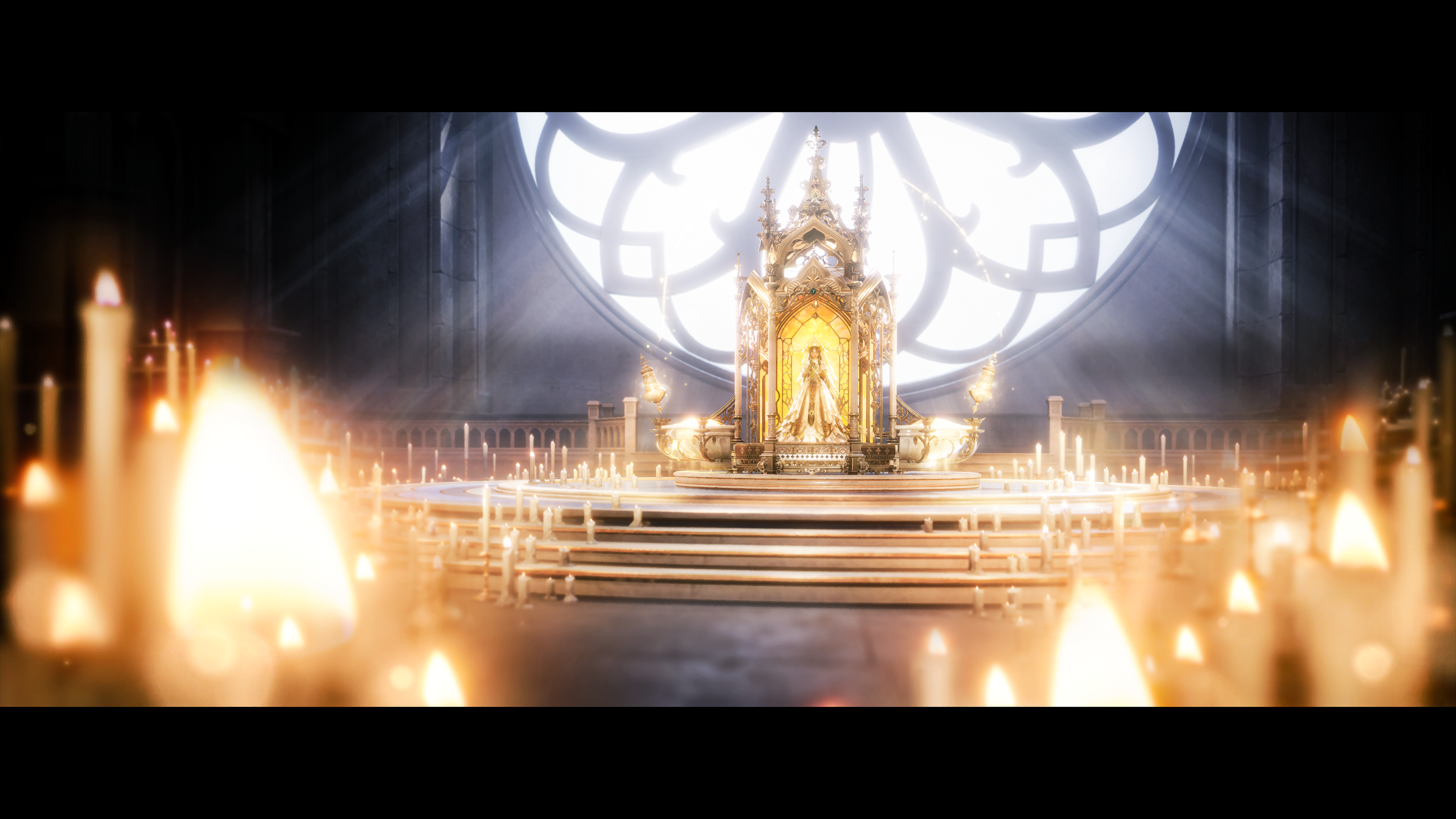 The piece opens with a gentle piano introduction, followed by a soft, slowly unfolding female vocal. Around the 36-second mark, as the Saintess and the Divine Maiden appear on screen, one ascending a staircase while the other descends, the chorus makes its first appearance. Here, we introduced a subtle musical detail: the main melody descends while a secondary instrumental line ascends, using this crossing motion to mirror the contrast in their destinies.