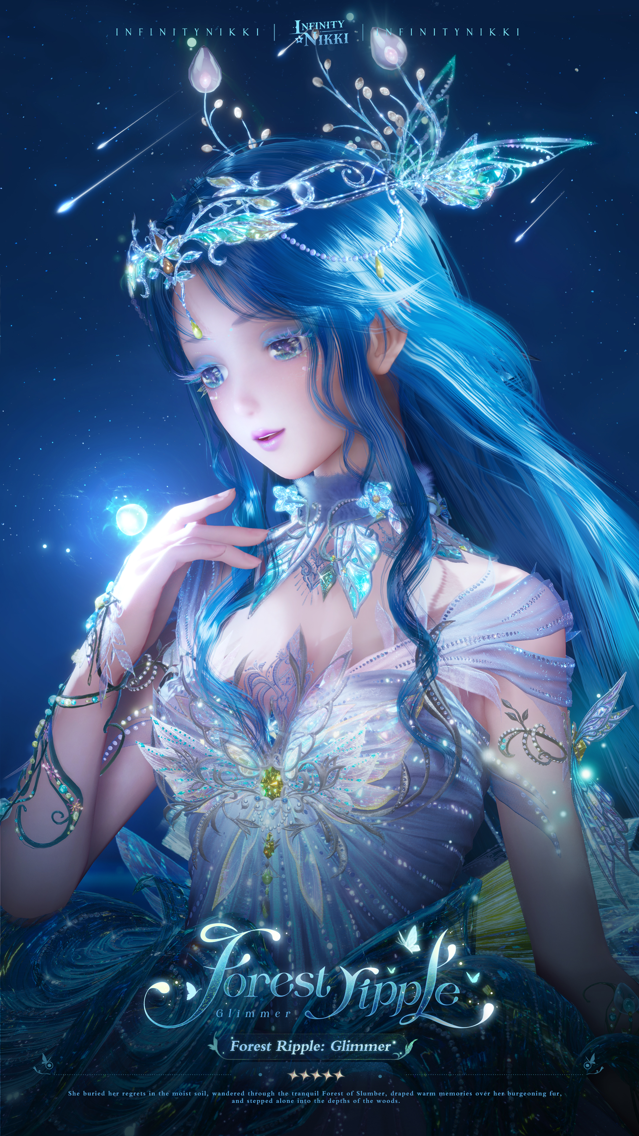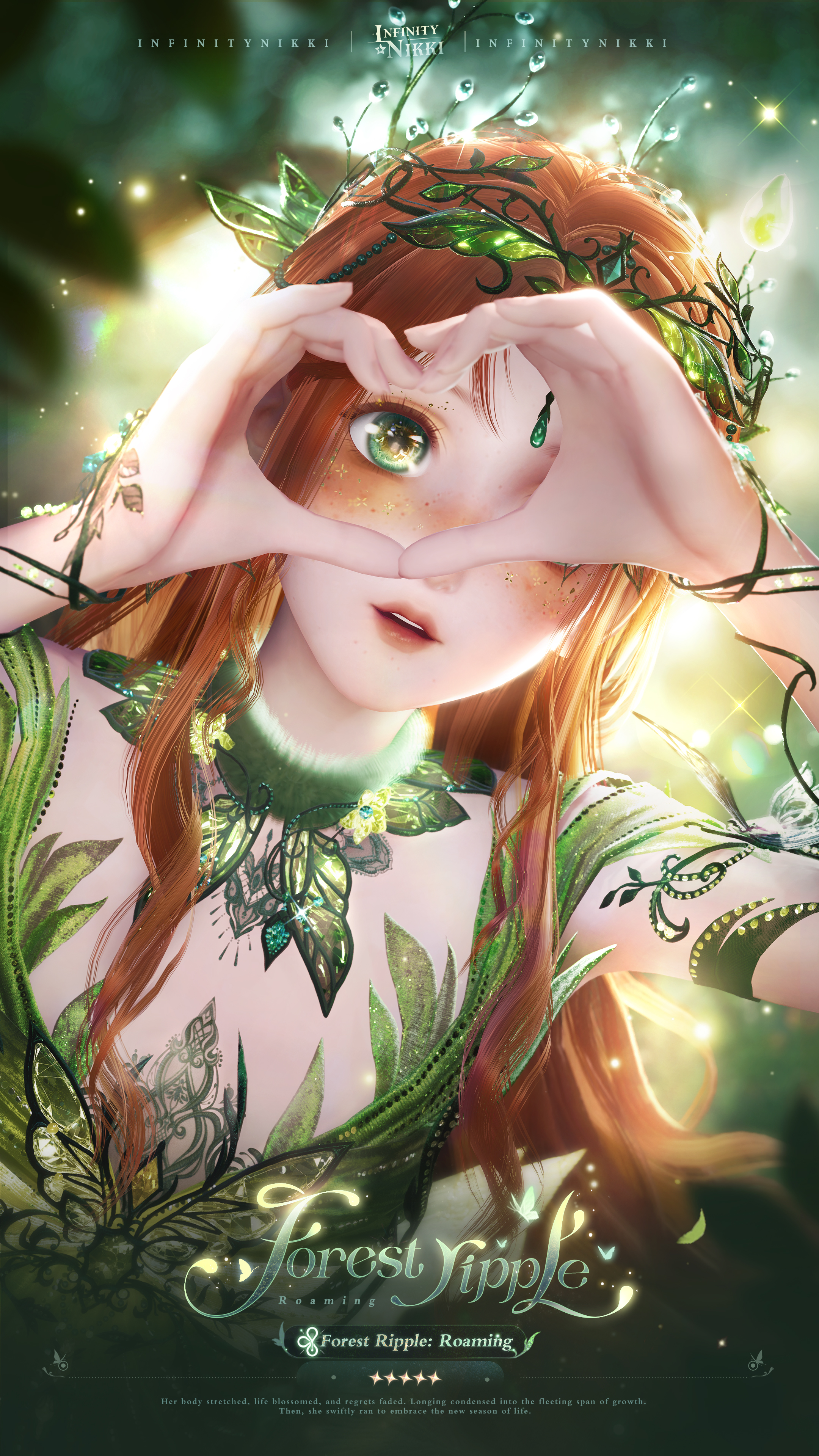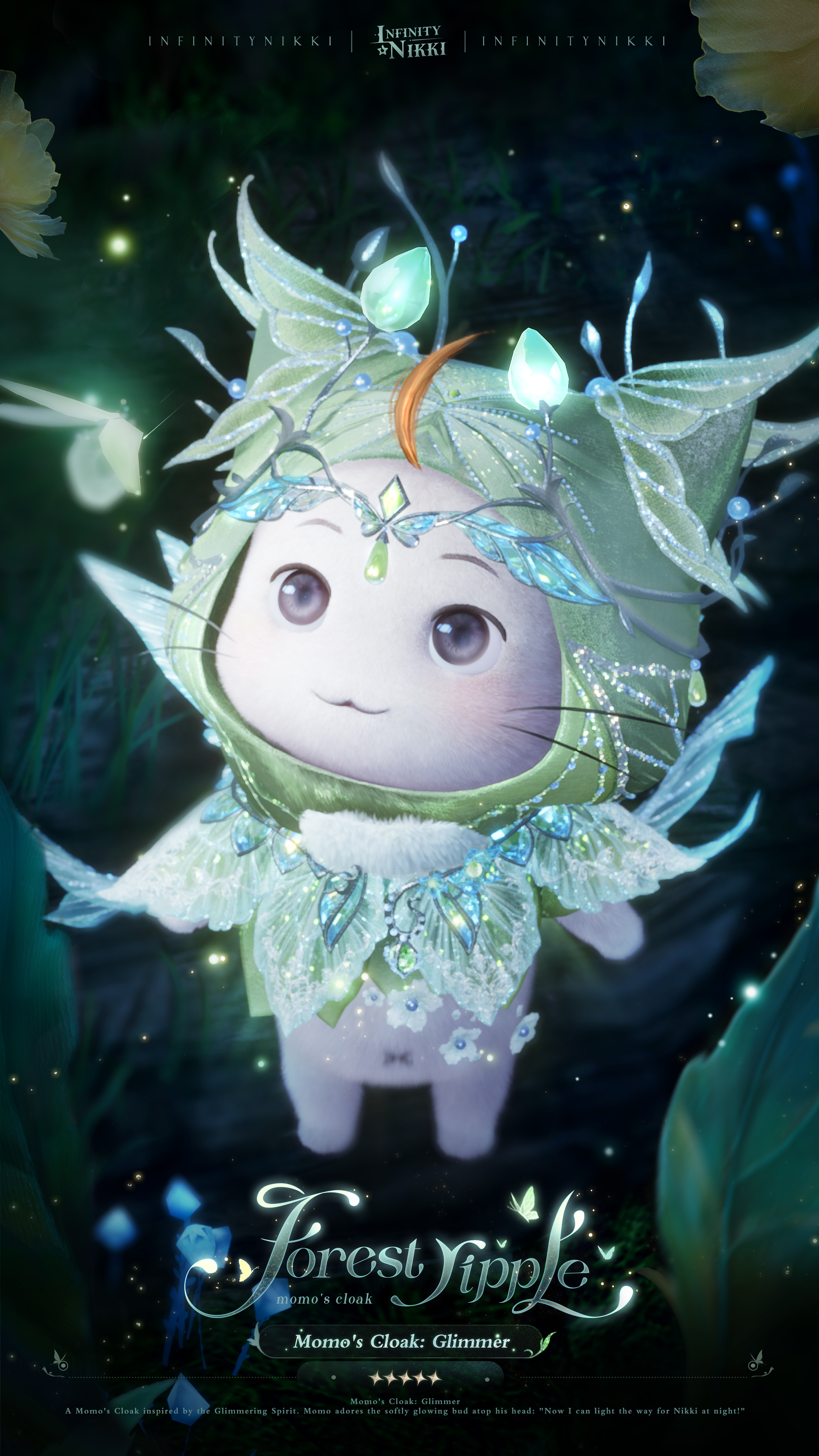 >>Evolve the 5-star outfit [Forest Ripple] to Stage 3 to unlock [Memory Ripple: Makeup], enhanced special effects, a new idle animation, and alternative details for certain pieces.