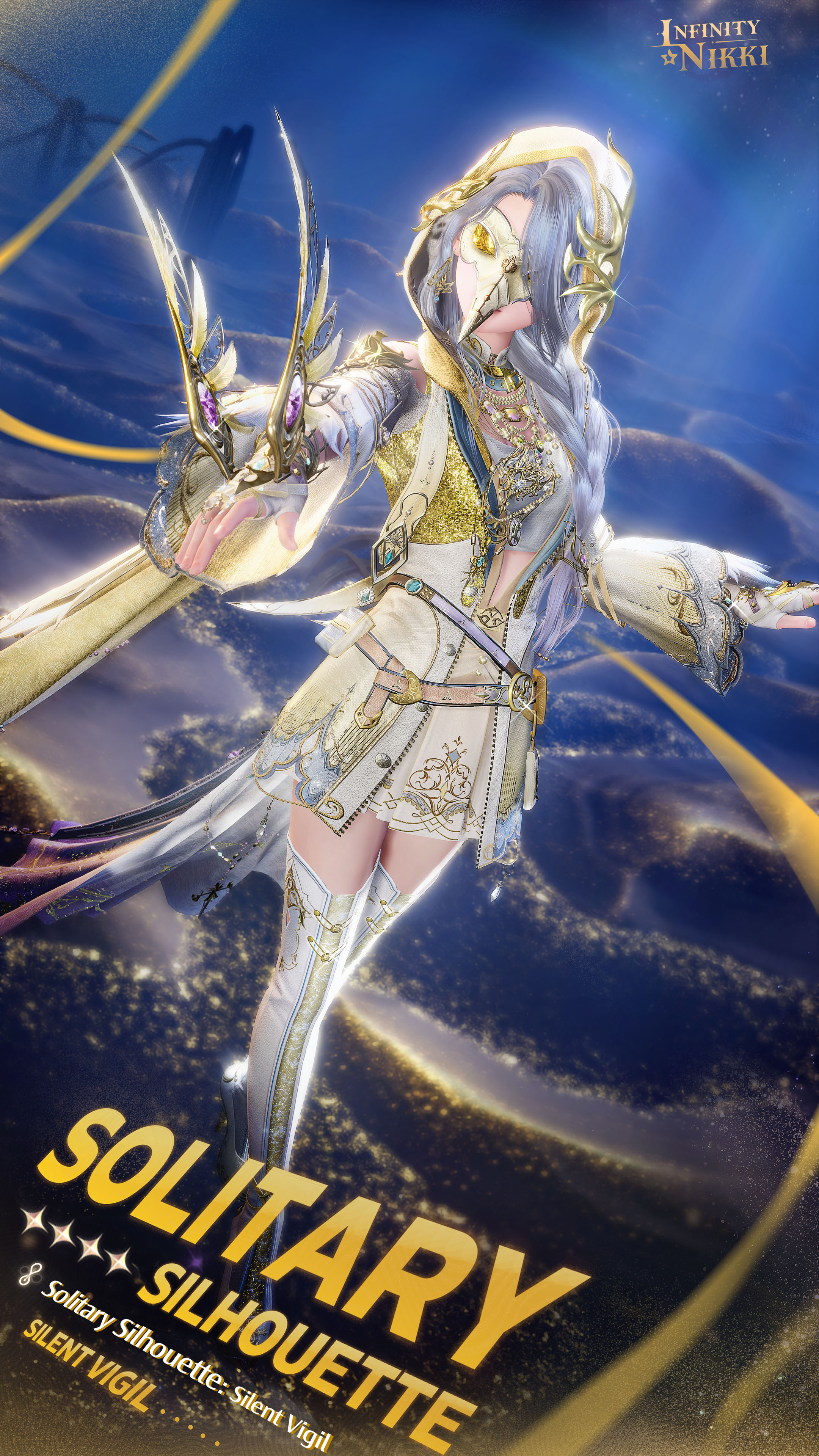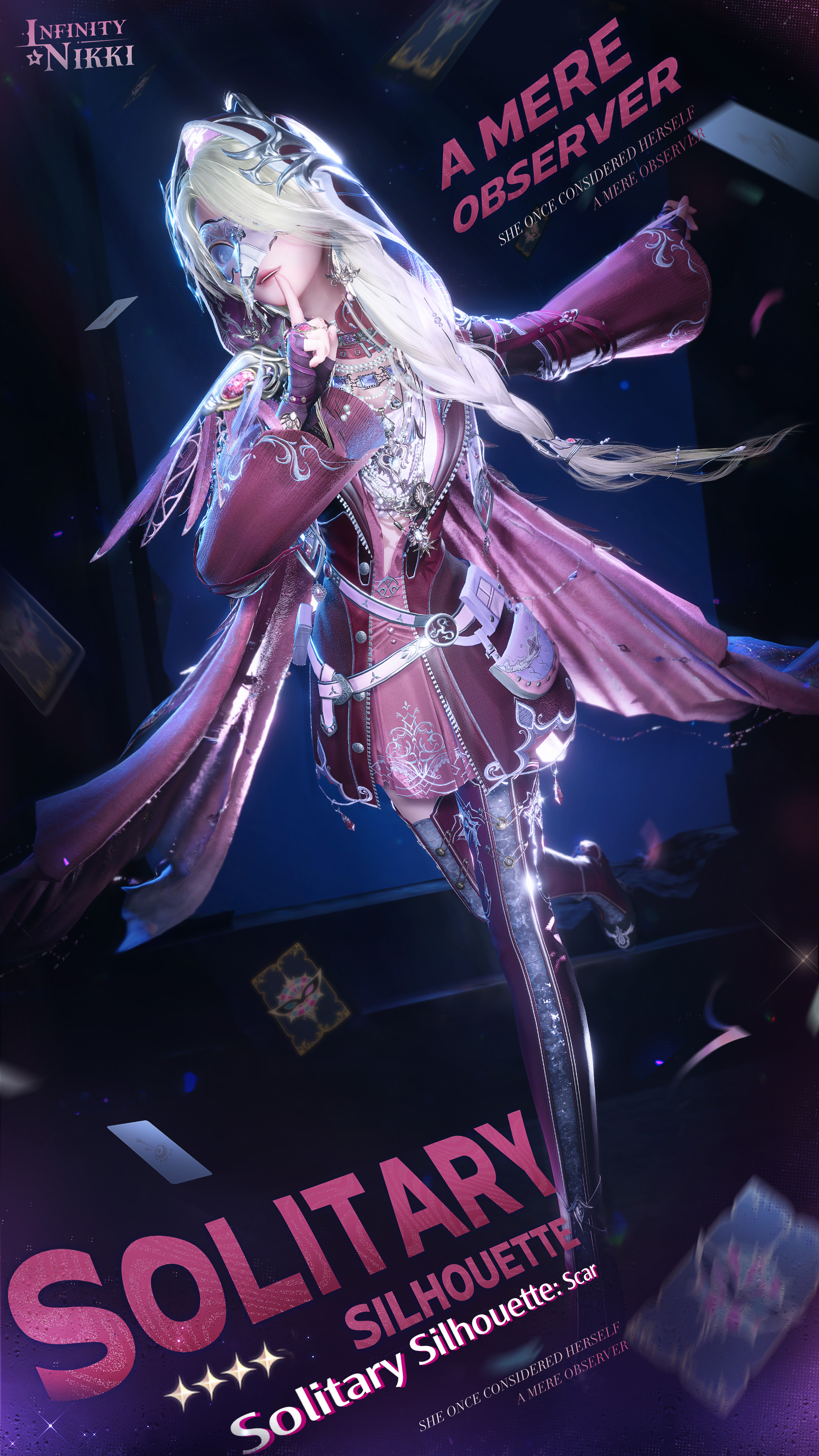 [Solitary Silhouette] can be evolved into the [Solitary Silhouette: Silent Vigil] outfit. Fully glow it up to obtain the [Solitary Silhouette: Scar] outfit.