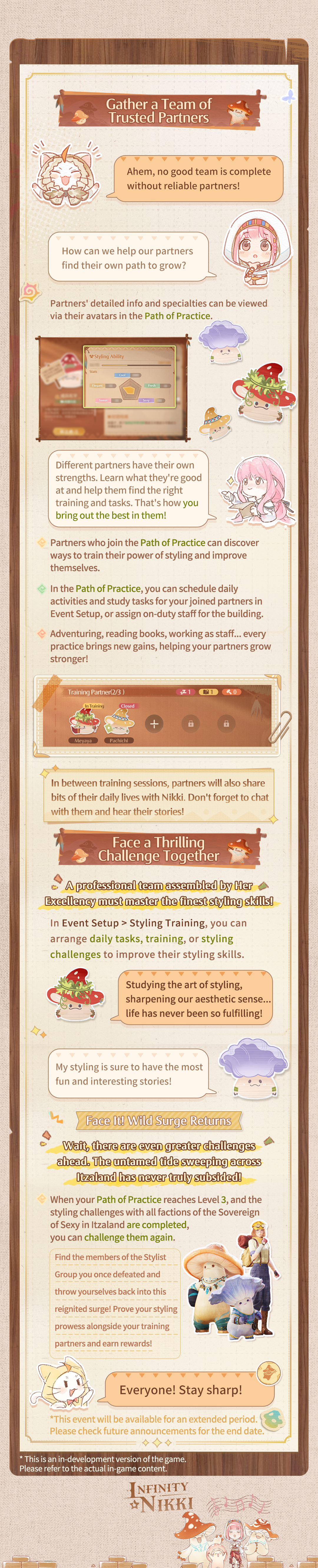 After completing the world quest [Toward Greater Glory!], you can start the world quest [I want to learn styling!] to unlock the [Path of Practice] feature. Recruit partners and set off on your styling adventure!