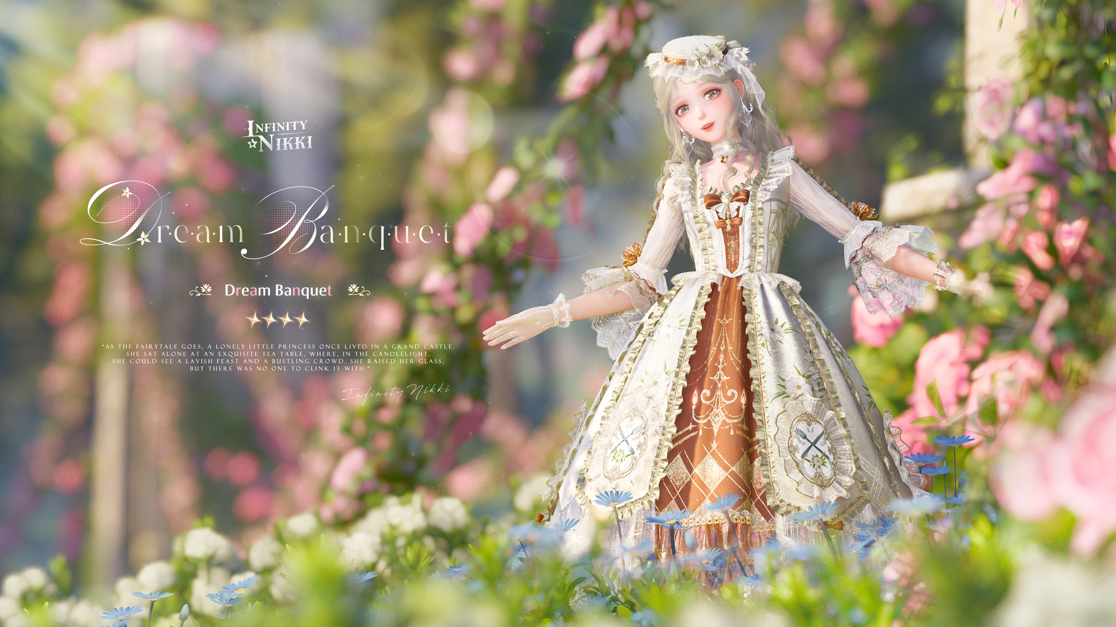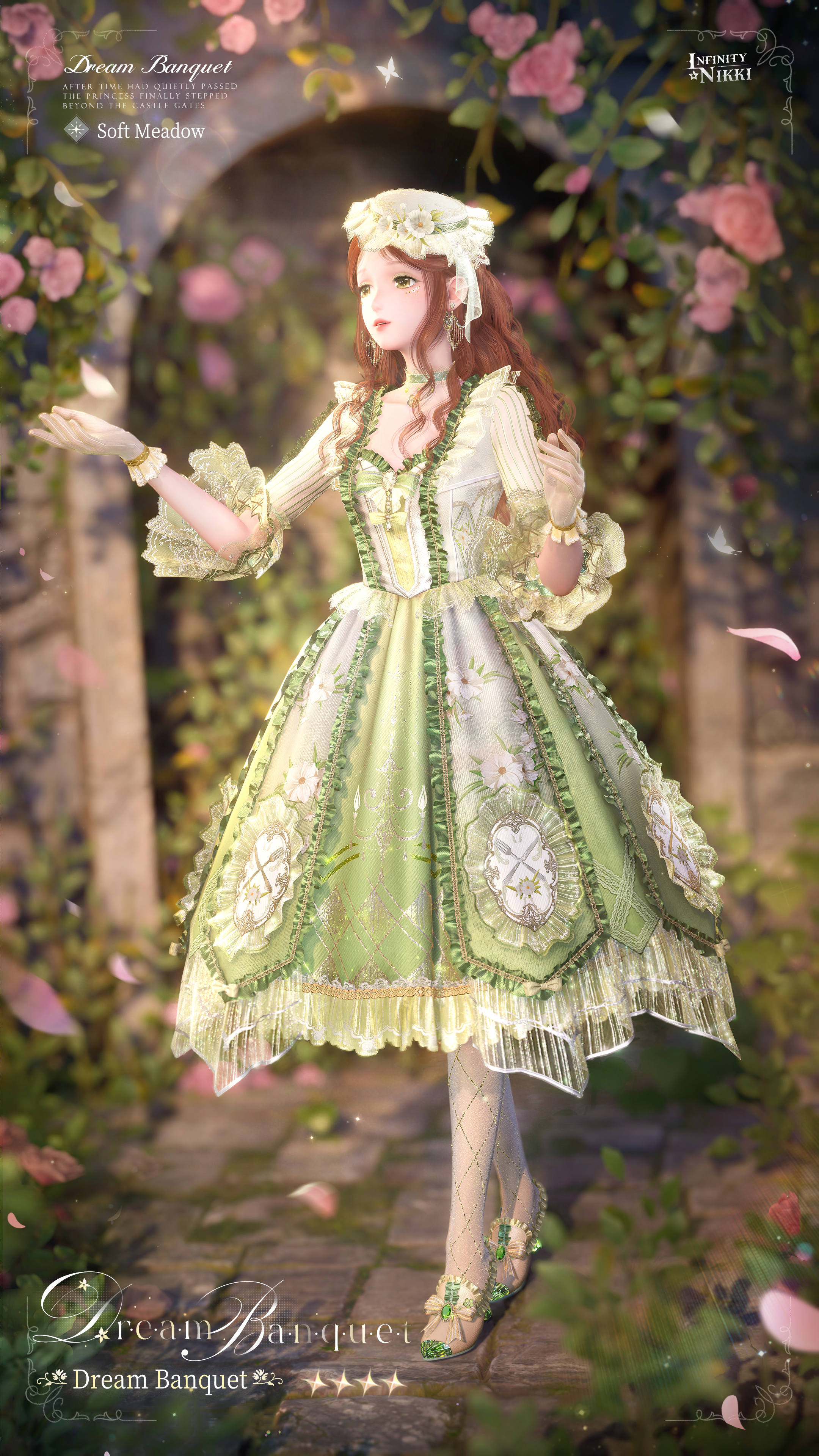 [Dream Banquet] can be evolved into the [Dream Banquet: Rebirth] outfit. Fully glow it up to obtain the [Dream Banquet: Soft Meadow] outfit.