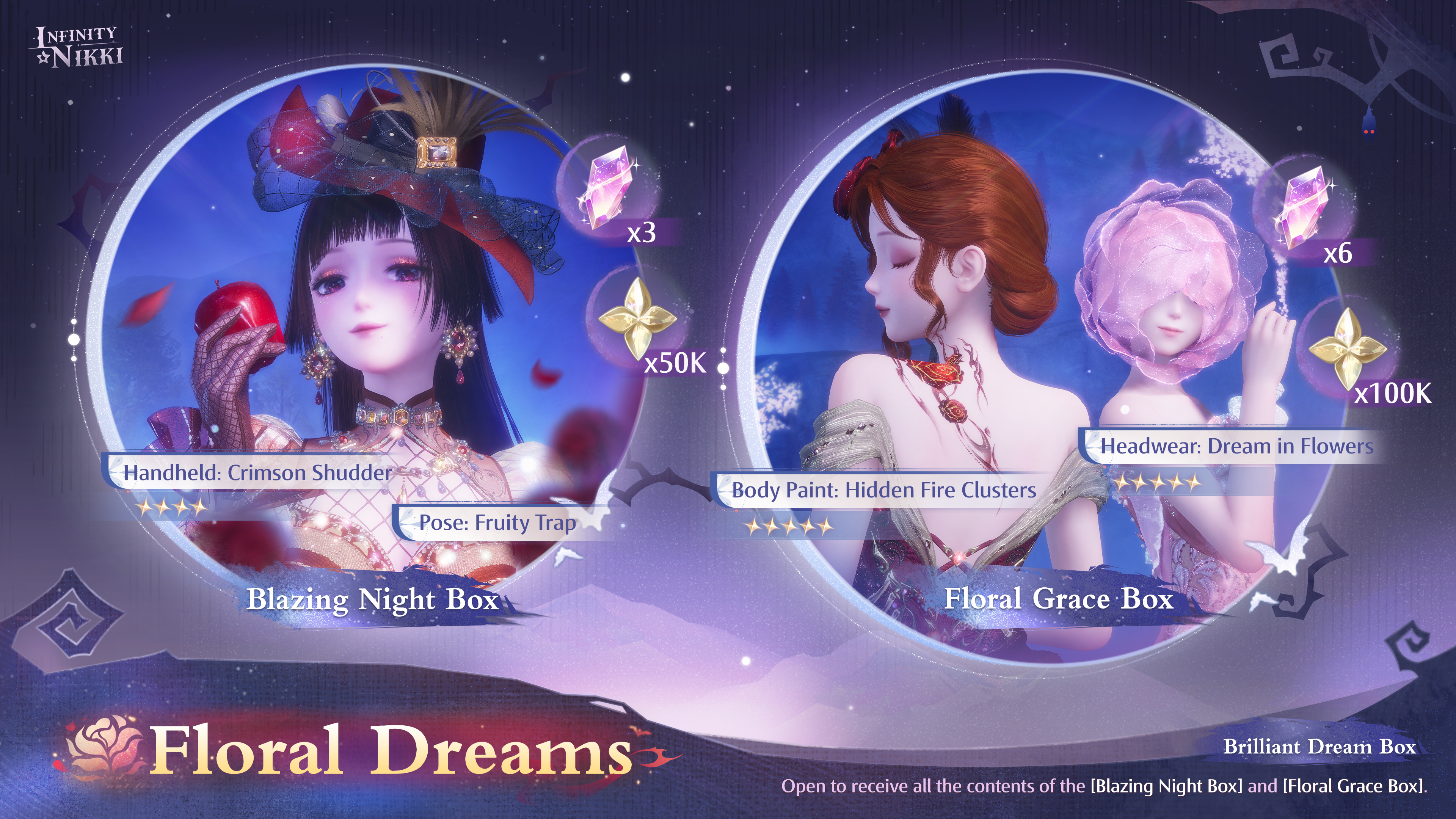 You can also purchase the [Brilliant Dream Box], which includes the [Blazing Night Box] and [Floral Grace Box] at a discounted price!