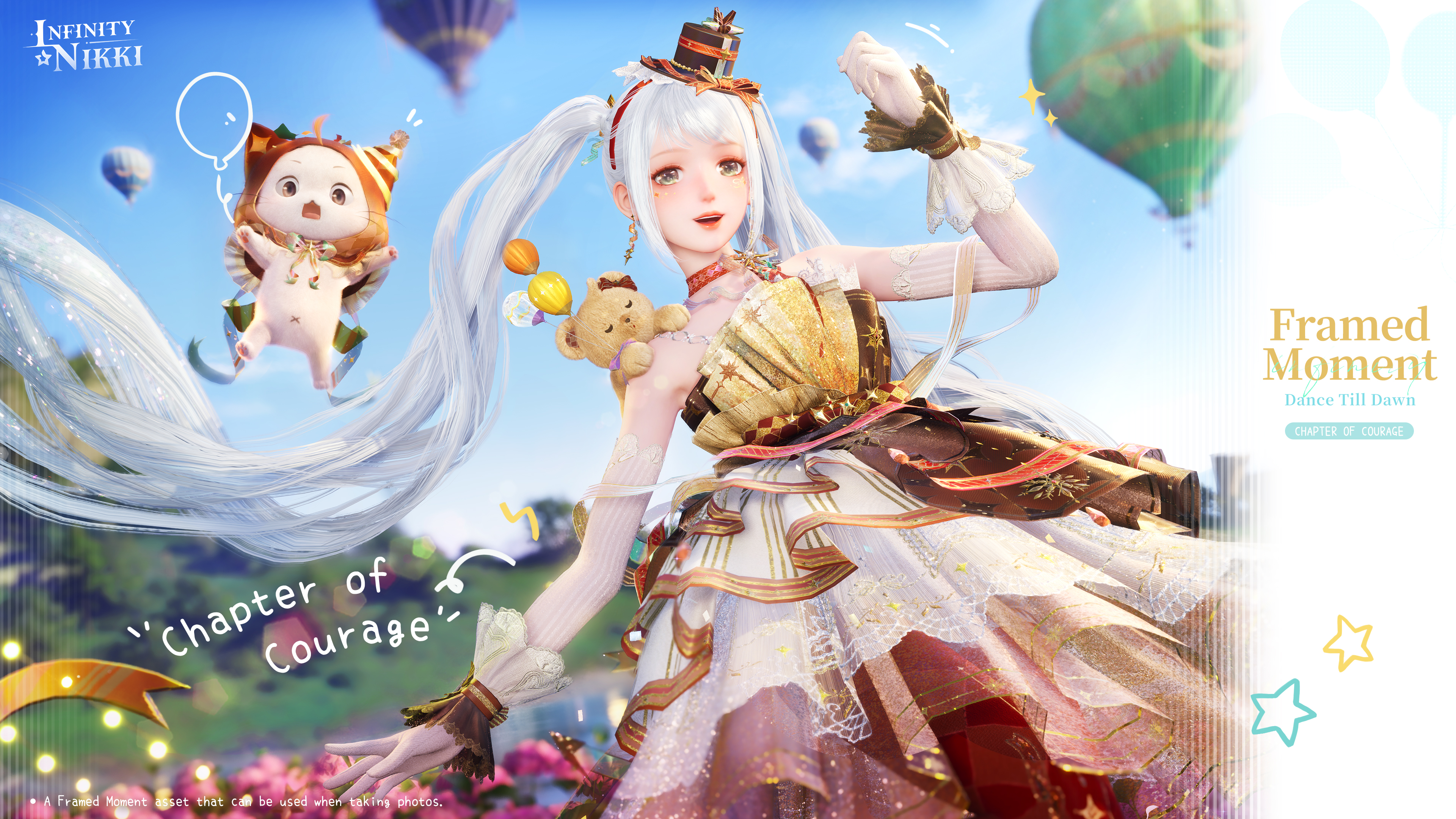 >> Evolving the outfit to Stage 2 unlocks the Framed Moment item [Chapter of Courage]. You will also be able to use [Vivid Heartchime: Colorful Balloons] on the Clothing Evolution > Decoration: Radiance screen to obtain [Colorful Balloons: Radiance].