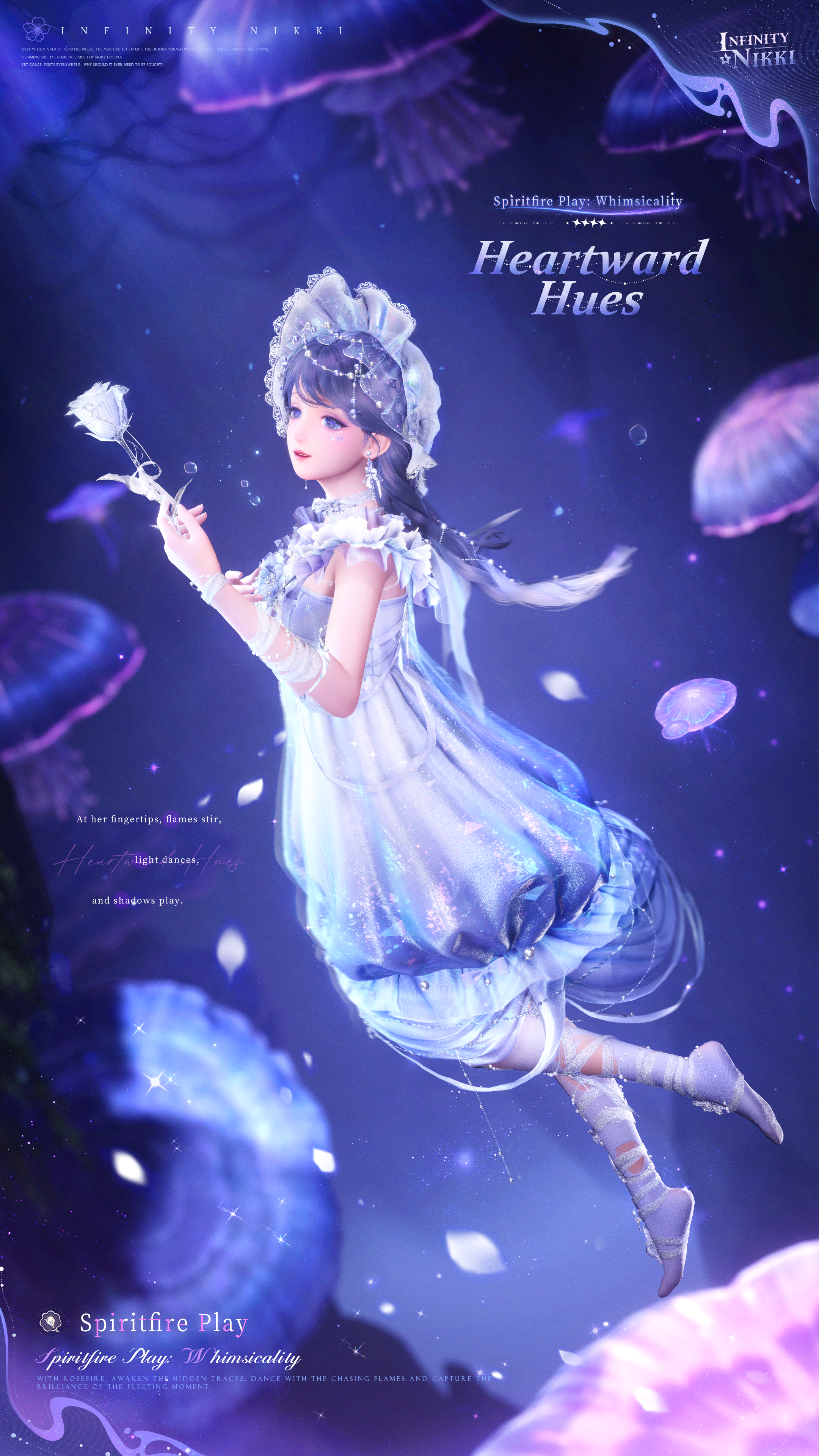 [Spiritfire Play: Whimsicality]: With rosefire, awaken the hidden traces. Dance with the chasing flames and capture the brilliance of the fleeting moment.
