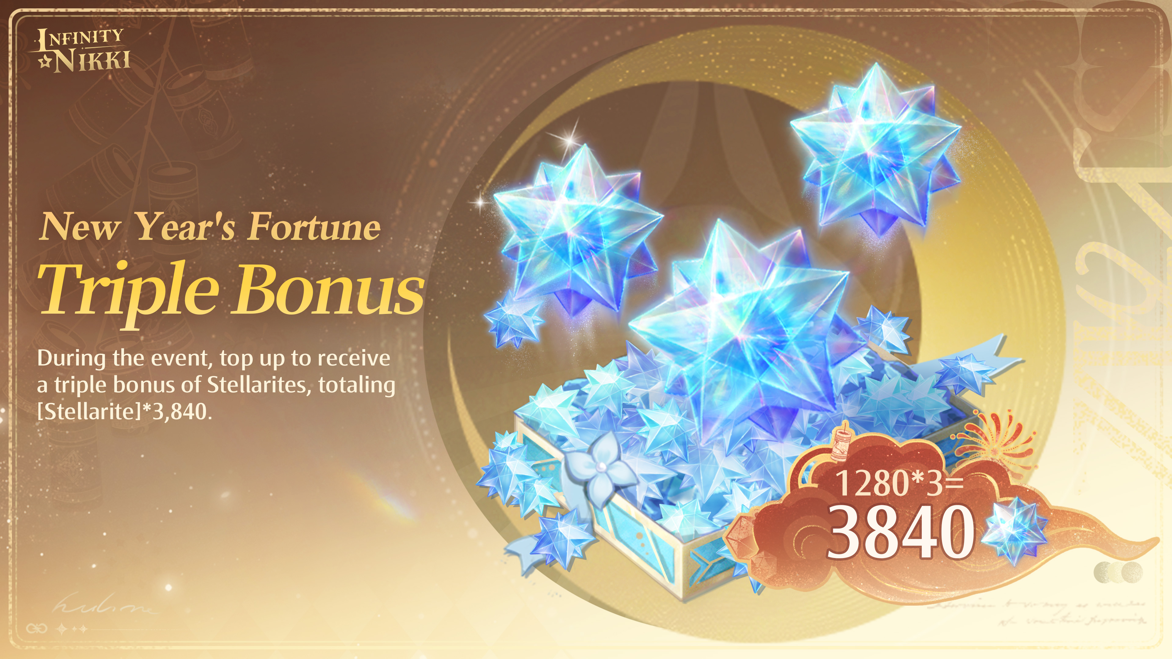 During the event, top up a specified amount in Store to receive a triple Stellarites rebate, totaling 3,840 Stellarites (Purchase limit: 1).