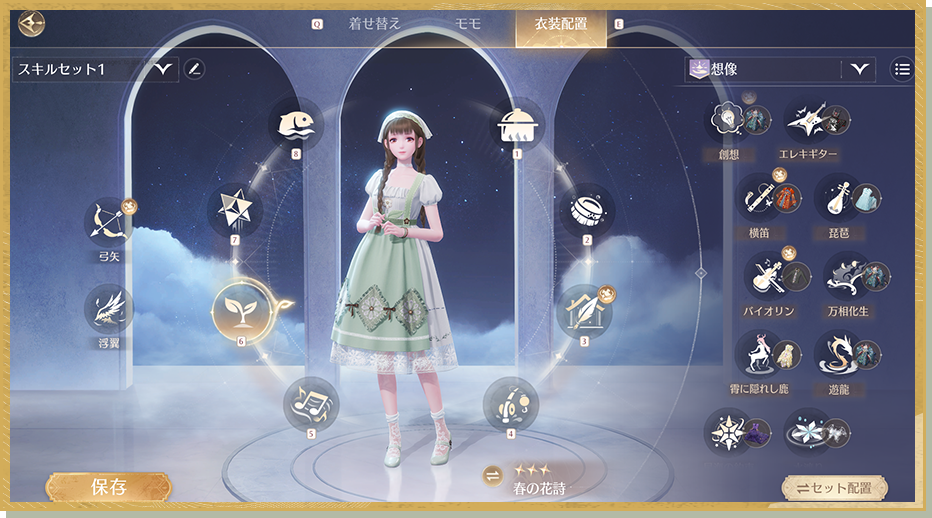 また、【衣装配置】画面にてカード型ビューを追加。カード型ビューでは、より多くのスキルが表示されるようになり、スクロール操作の負担を軽減します。切替ボタンからリスト・カード型ビューを自由に切り替えられます。