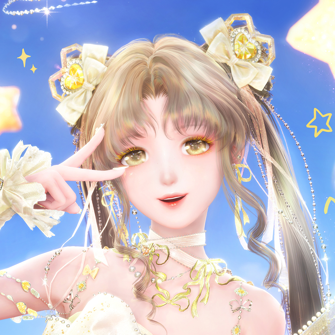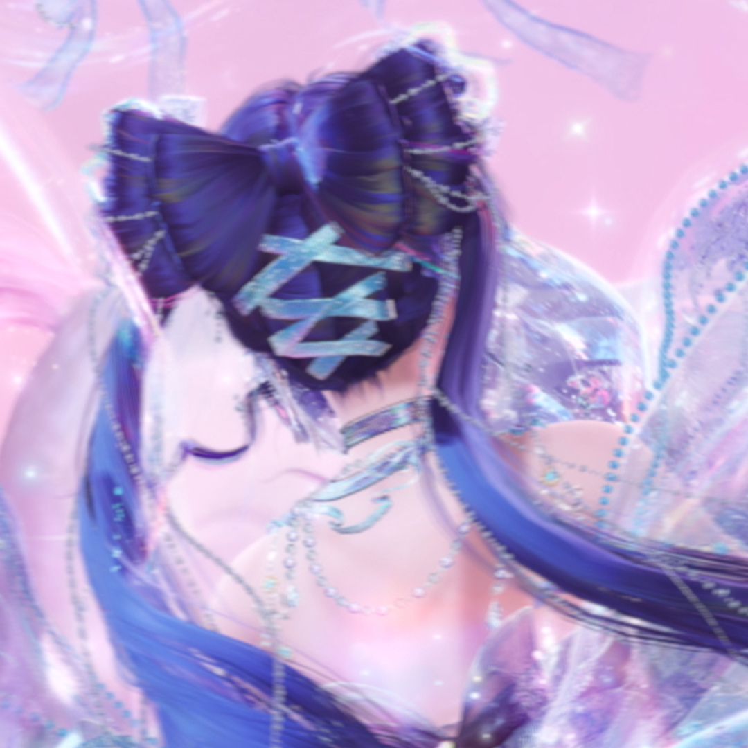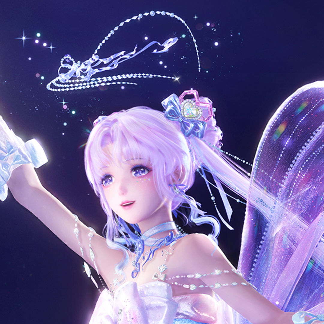 整套服裝散發童話般的甜蜜氣息,與獨角獸相映喚起無盡夢幻的遐想。緞帶光環的設計烘托了白日夢一般的奇幻氛圍,精緻的絲帶旁不斷逸散著星光般的點點糖霜,就好像將微縮的糖霜銀河裝飾於頭上。