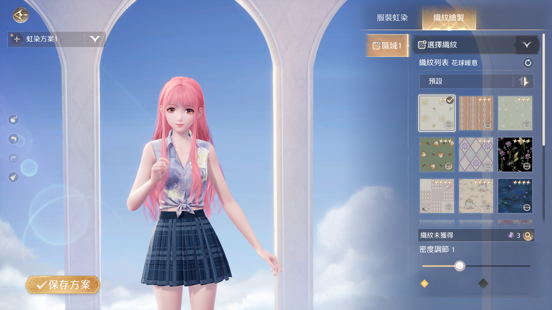 對於想要保存或導入的方案,可透過消耗對應數量的服裝虹染道具,一鍵解鎖方案中狀態為【未解鎖】的色盤或織紋。