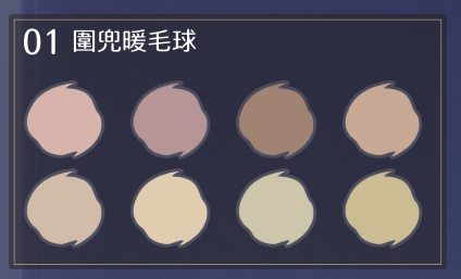 根據風格差異,顏色將被分割為不同的組合,即【色盤】。每個色盤內部包含8種顏色,每個顏色稱為一個【色格】。服裝初次獲得時,將自動開放6個色盤,且每個色盤的前2個色格自動解鎖。