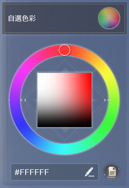 當五星套裝完成進化3,且其餘色盤全部解鎖後,將開放「自選色彩」自訂色盤。此時將不受預設色格的限制,可自訂喜歡的顏色進行虹染。
