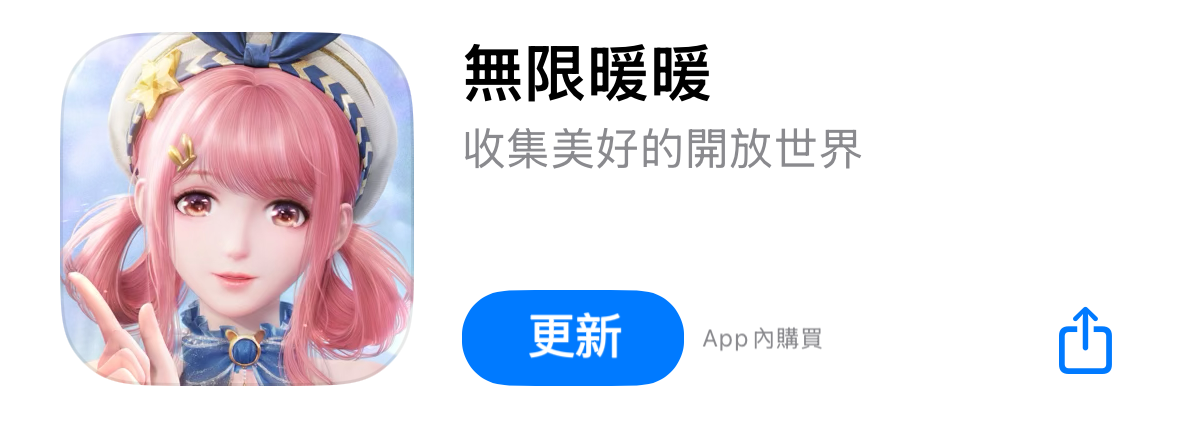 跳轉至App Store【無限暖暖】頁面後,點擊【更新】按鈕;
