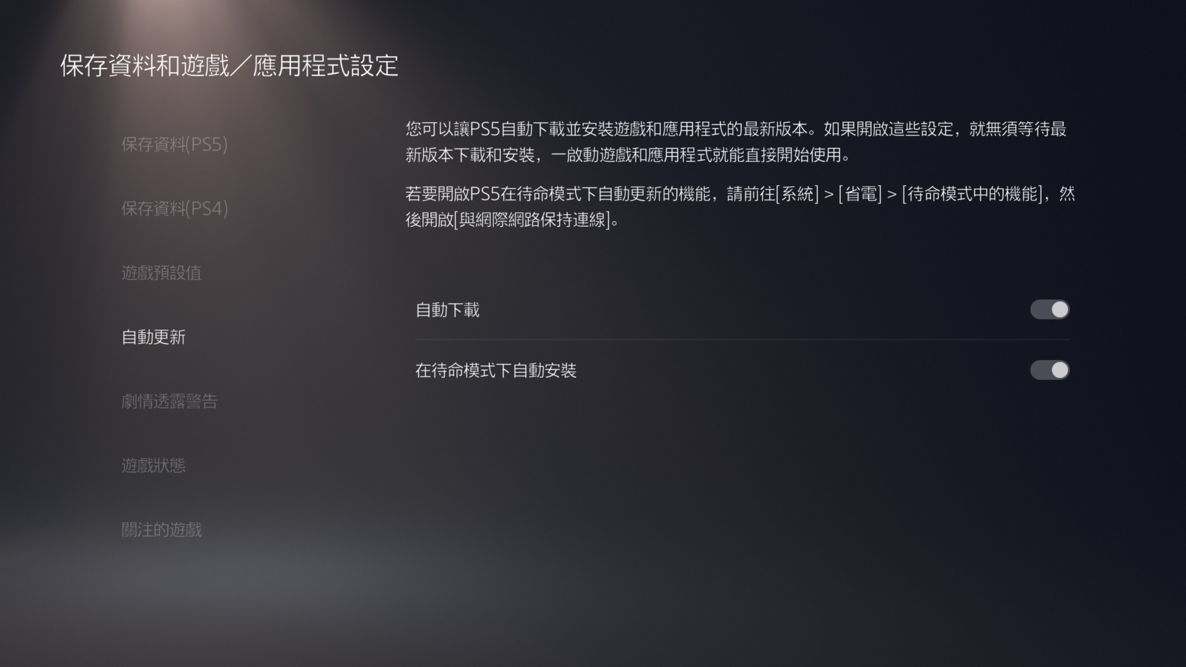 2. 前往設定 > 保存資料和和遊戲/應用程式設定 > 自動更新;