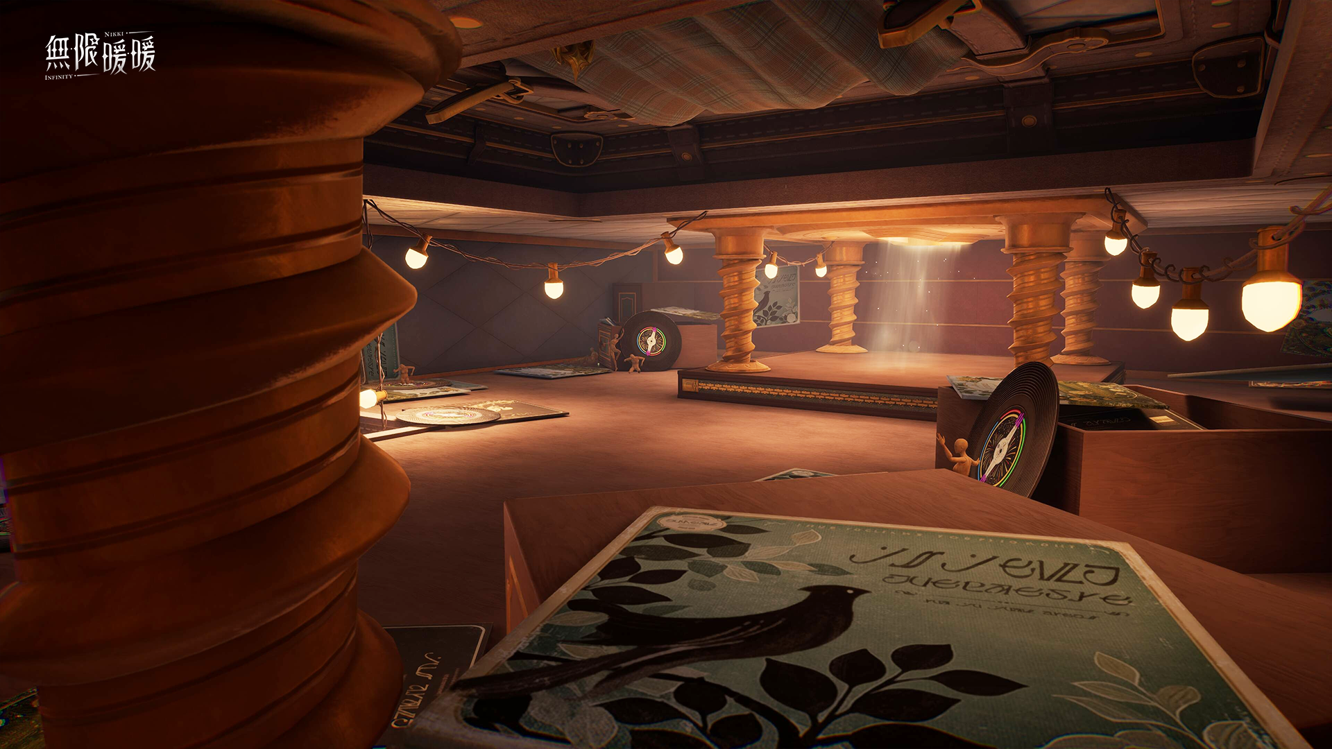 在第一次進入箱中劇院的時候,我們在這個地方設計了30秒左右的音樂不斷循環,相信大家在這裡待一段時間會意識到這一點,這其實是想要暗示人偶的存在:他們在晝夜不停地重複著這一段執念。我們在距離舞台近的地方可以看到梅莉莎、雅各、吉娜三個演員的演出聲音是以3D點聲源的形式呈現的,而芮妮塔我們暫時看不見她(劇院傾倒時才能看見她)。