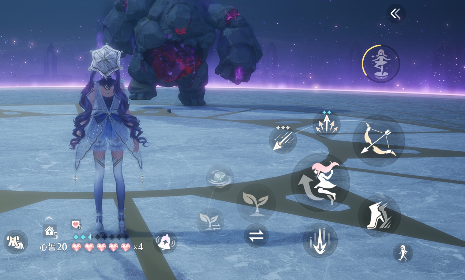 其中弓箭將是新版本中戰鬥玩法的核心,選擇將淨化能力替換為弓箭能力後,可以透過長按對應按鍵進入瞄準狀態,發射在一定範圍內能夠自動瞄準的追蹤箭。使用黏黏爪能力可以在空中快速飛盪,也可以在適合的位置長時間懸停。