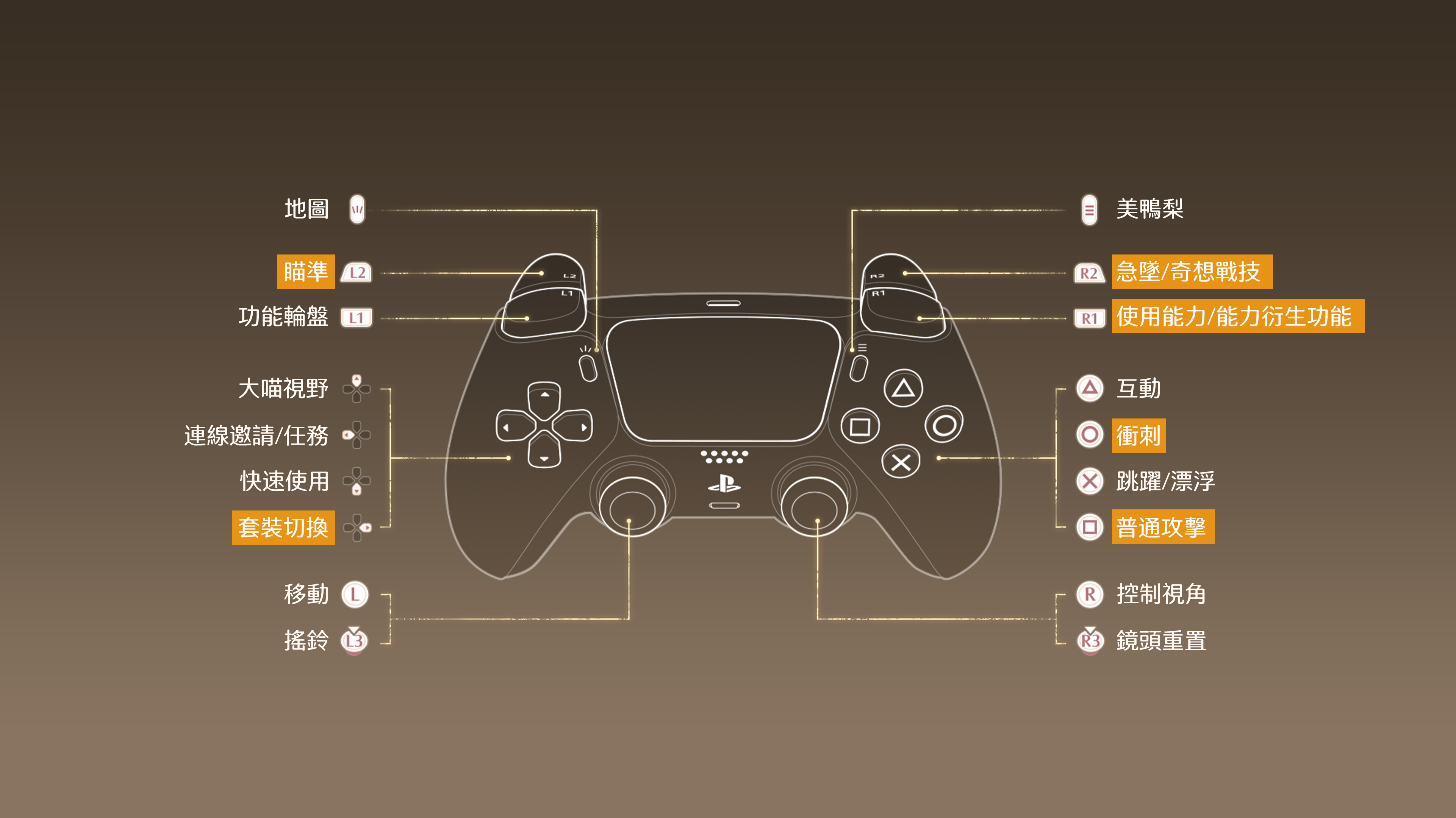 首先,我們為PS5端及在PC端使用控制器進行遊戲的搭配師,增加了一套更加適合新版本戰鬥玩法的全新按鍵方案。