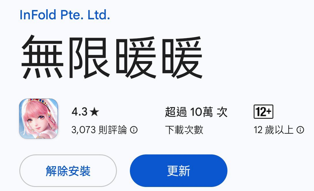 跳轉至Google Play【無限暖暖】應用程式頁面後,點擊【更新】按鈕;
